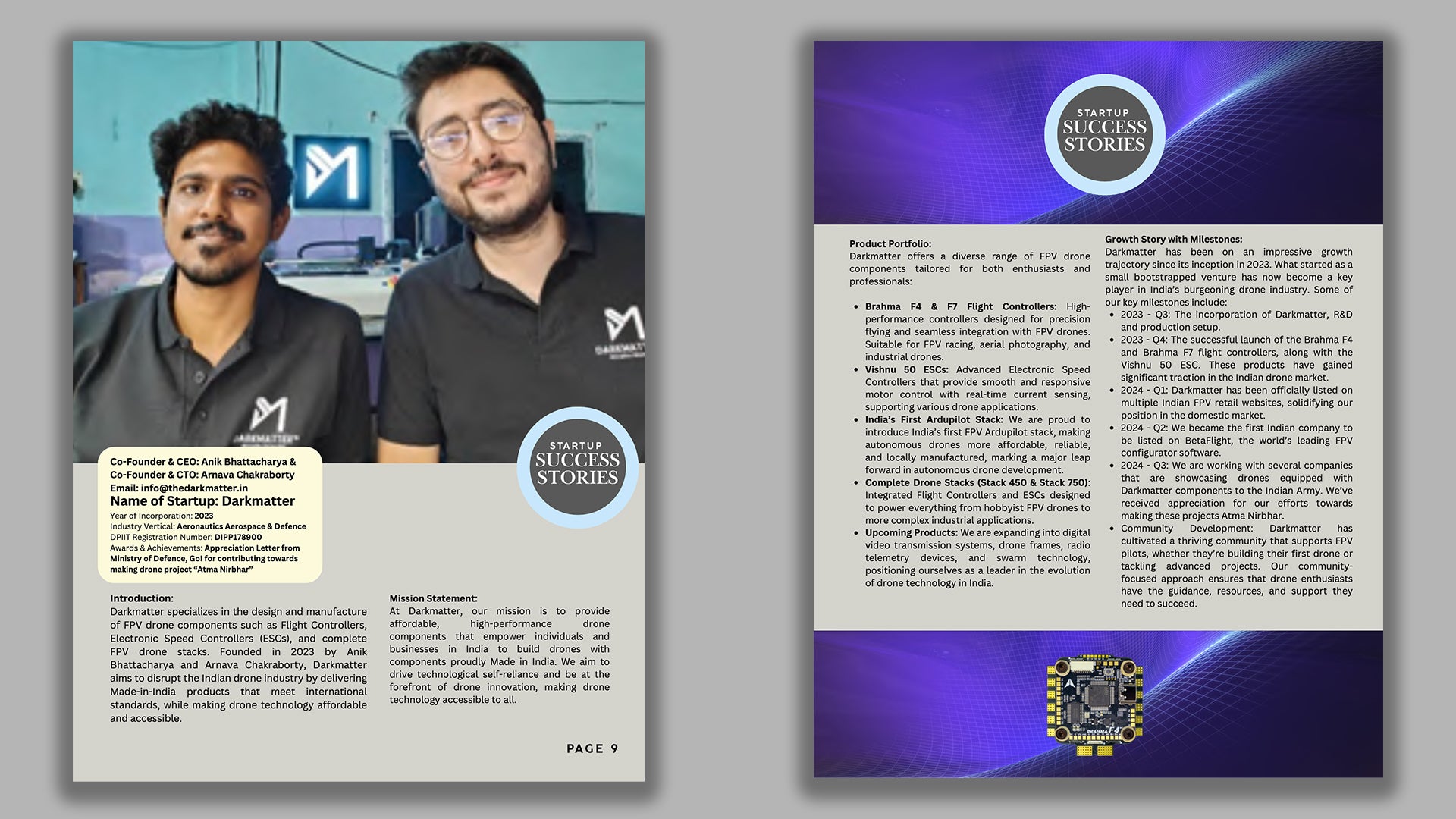 Welcome to Darkmatter, where #DisruptiveMomentum is more than just a tagline – it's our ethos. Join us in a journey of innovation as we redefine drone technology in India. Our cutting-edge products like the BRAHMA F4 and DM50 ESC are crafted with precision, embodying the best of Made in India. We're not just creating drones; we're fostering a revolution, making advanced drone tech accessible to all. With Darkmatter, experience the power of innovation that propels the future. Dive into the world of possibilities with us, where every flight marks a step towards a technologically empowered India.