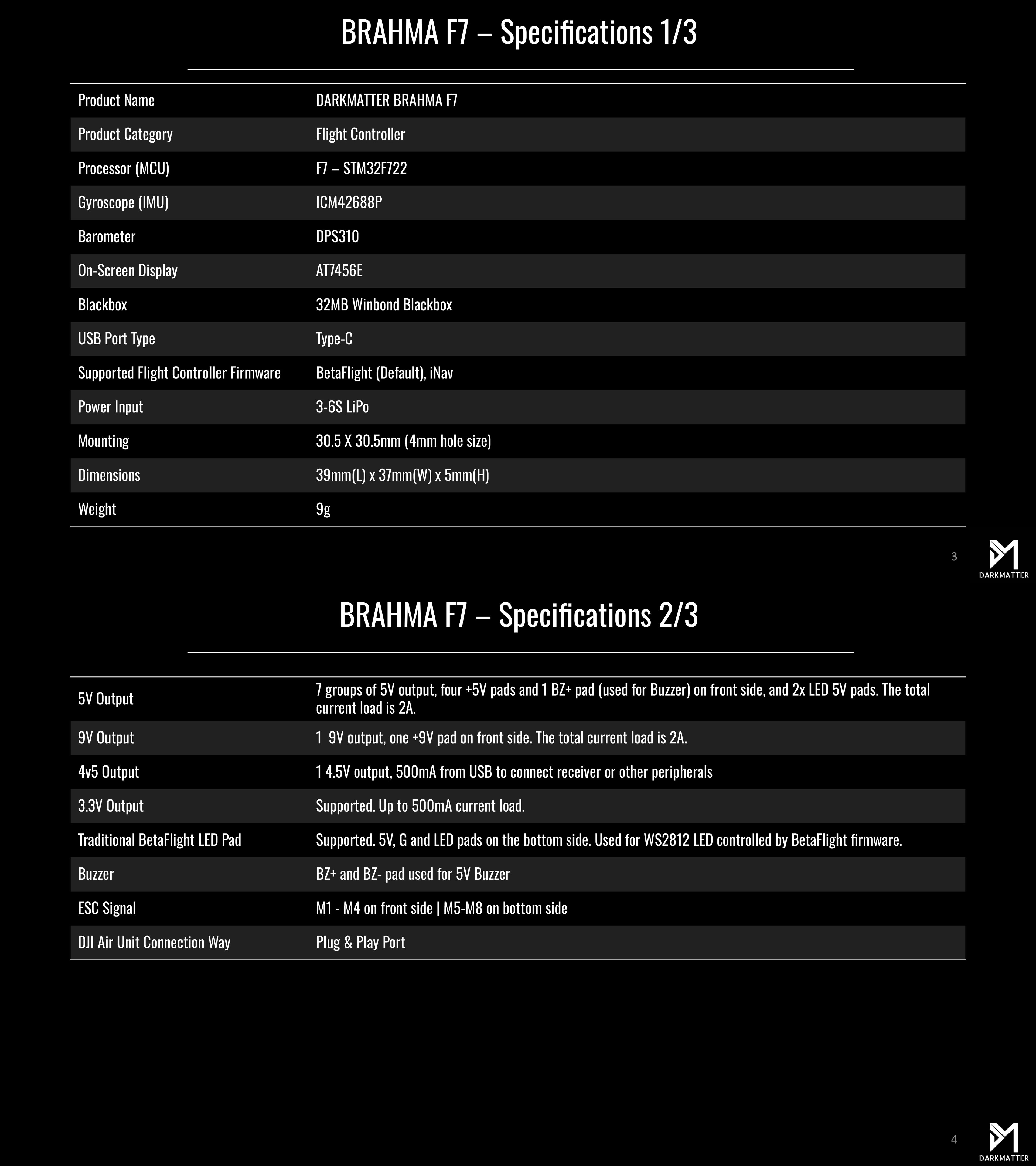 - 9V output (2A) for digital VTX systems