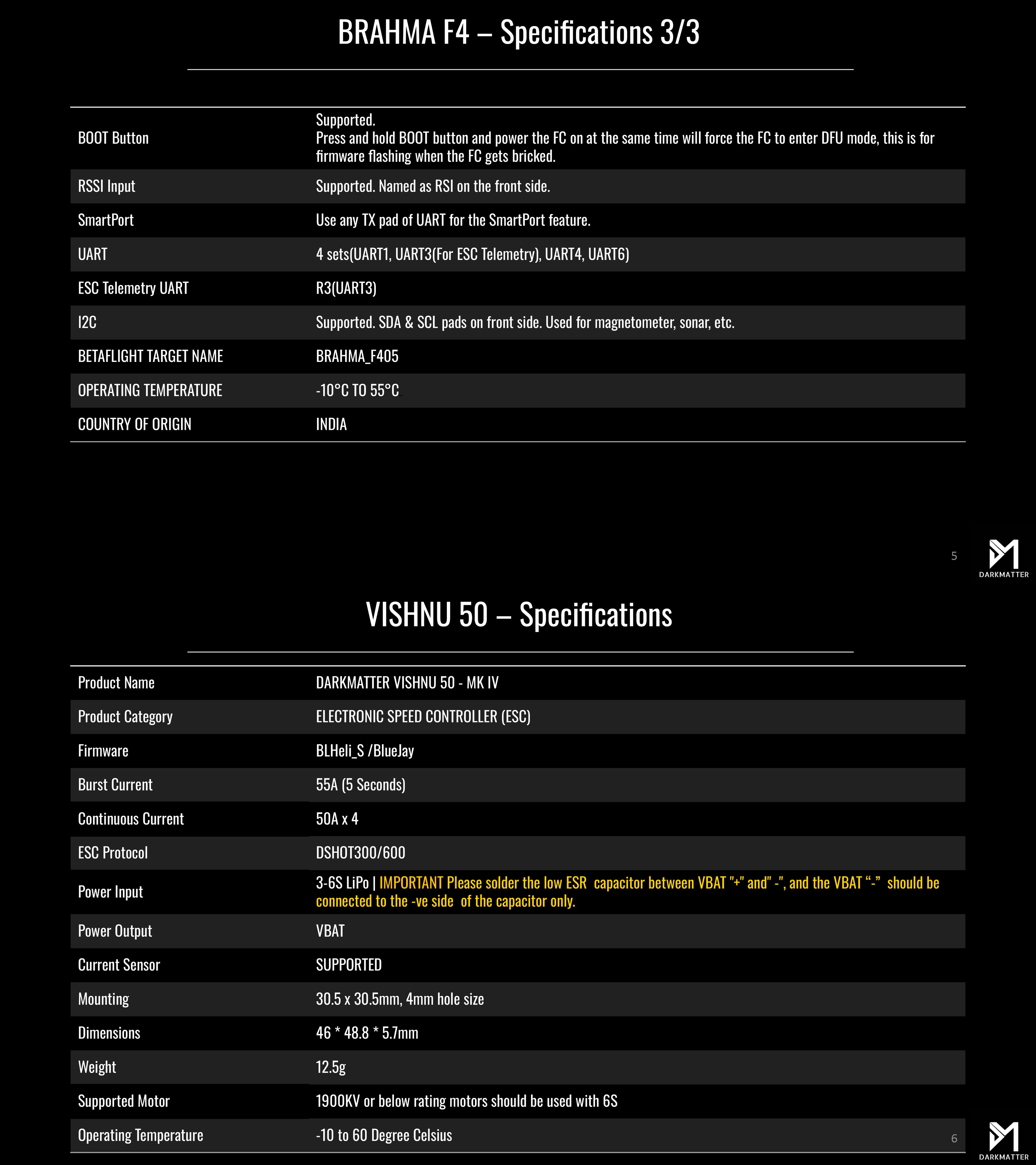 Brahma F4 FC and Vishnu 4 in 1 ESC are high-quality, made-in-India products that have greatly improved my drone's performance. Awesome experience with DarkMatter and great community support!