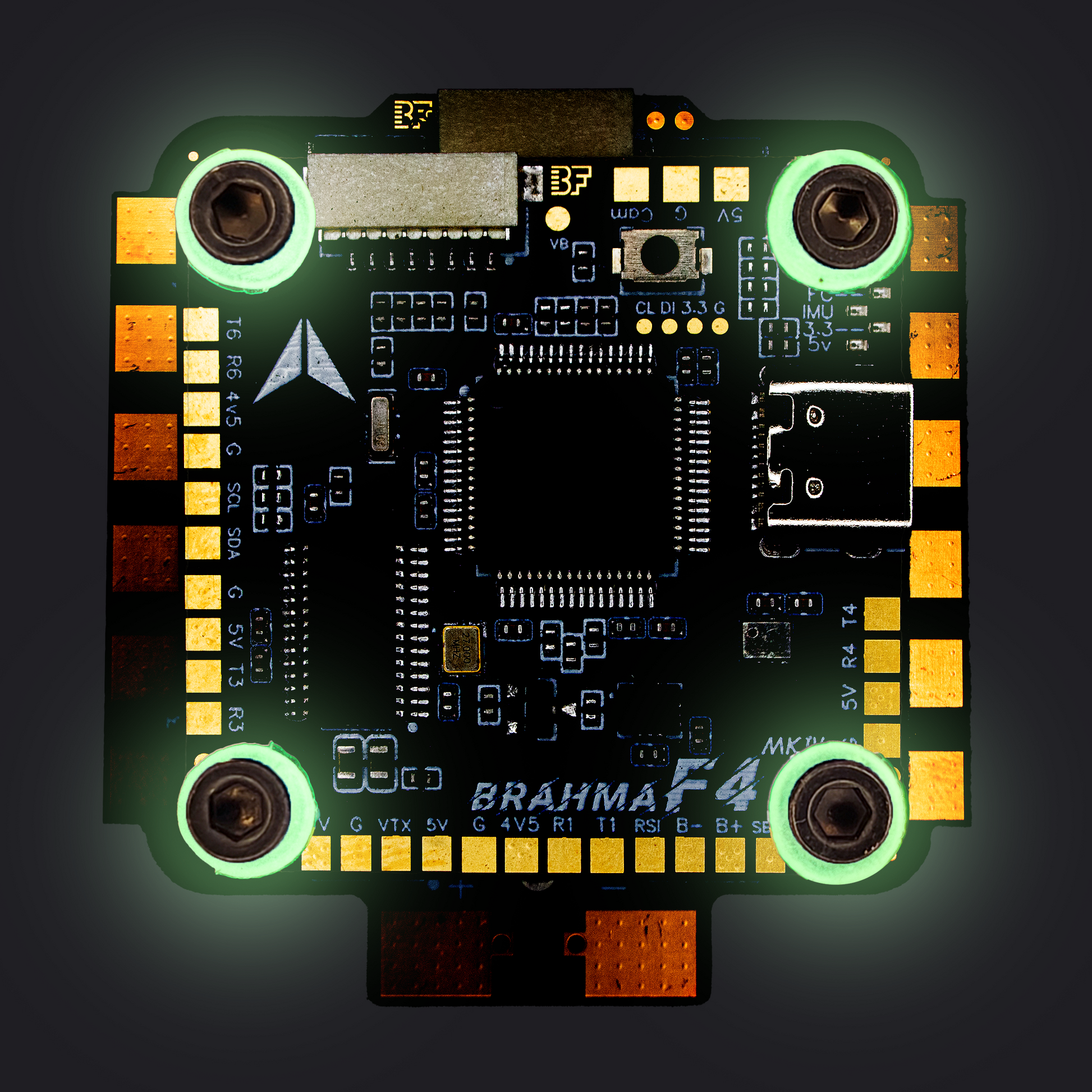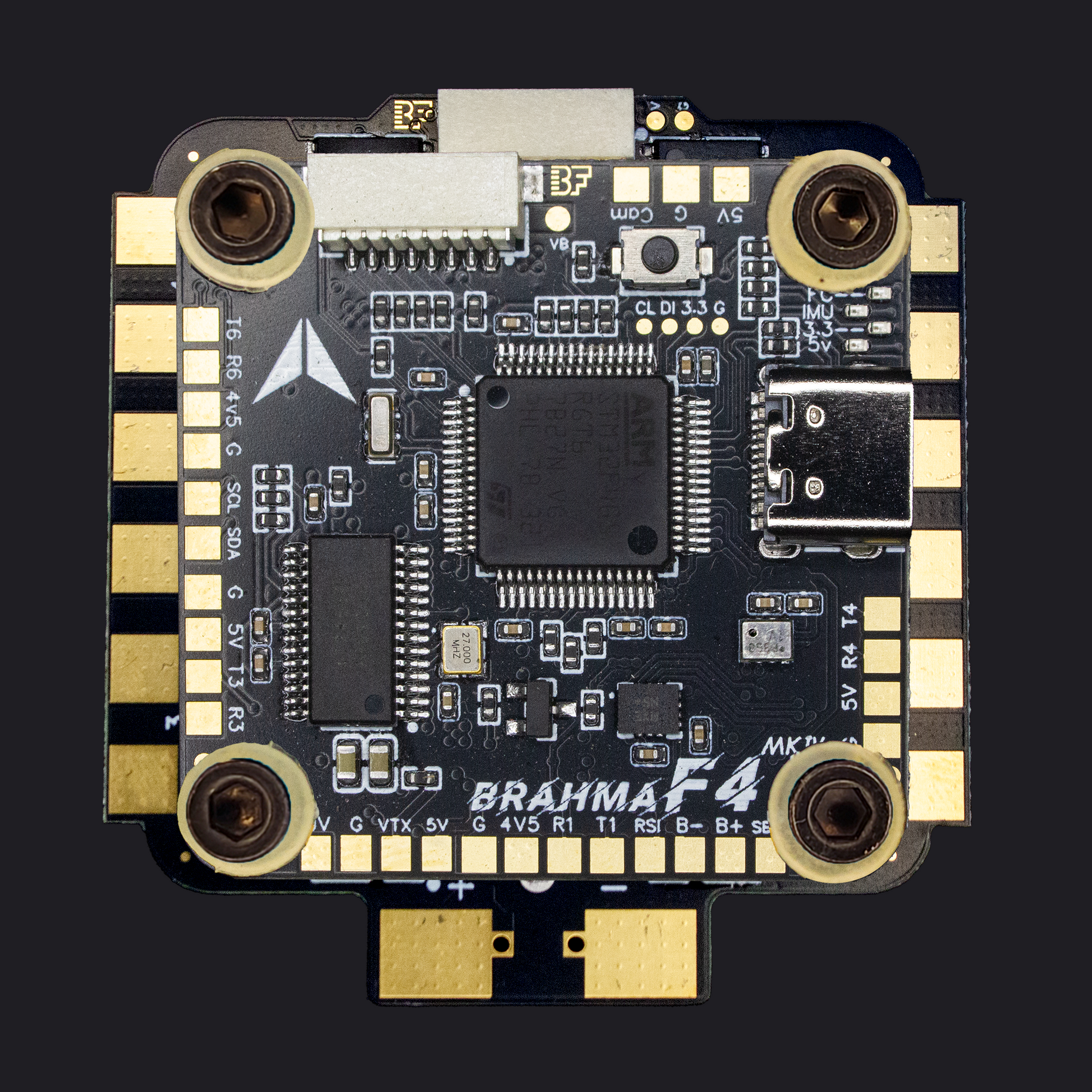 - BetaFlight: Official Firmware can be flashed directly from the configurator by choosing the board BRAHMA_F405