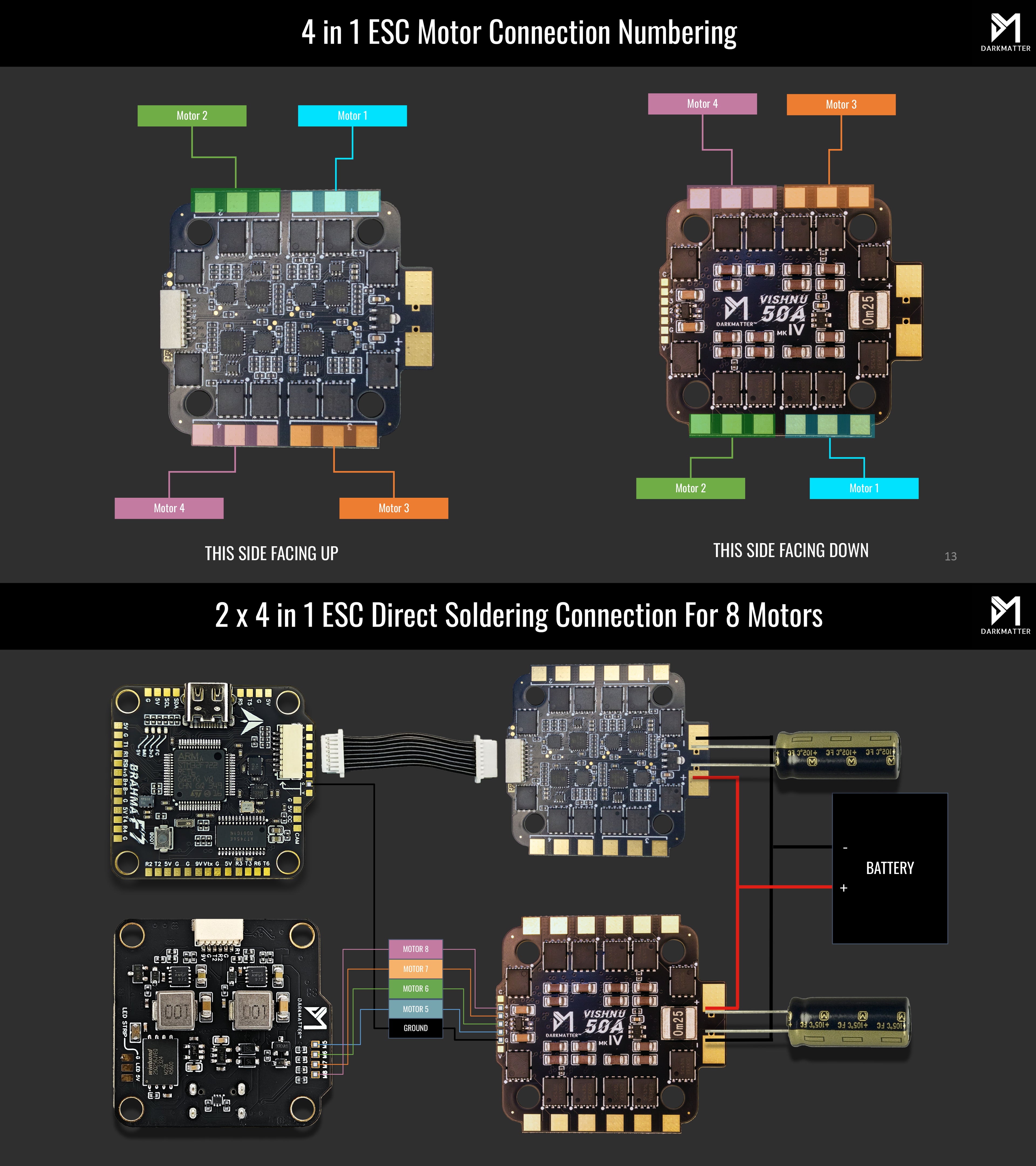 Compatible with quad, hex, and X8 configurations thanks to motor pads M1–M8.