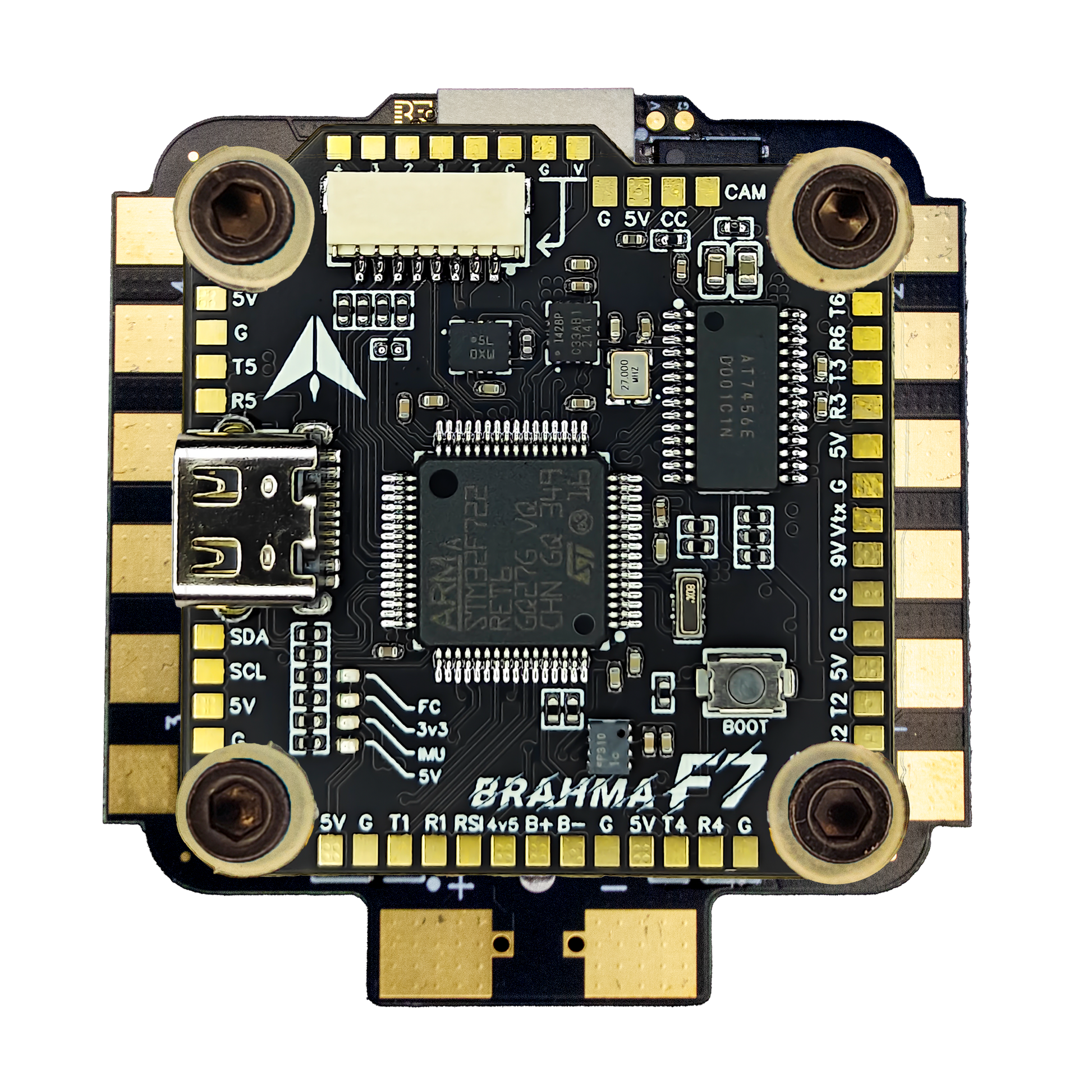Powered by the STM32F722 processor, the BRAHMA F7 delivers fast loop times, improved filtering, and superior responsiveness. Ideal for high-performance FPV, long-range, and professional builds.