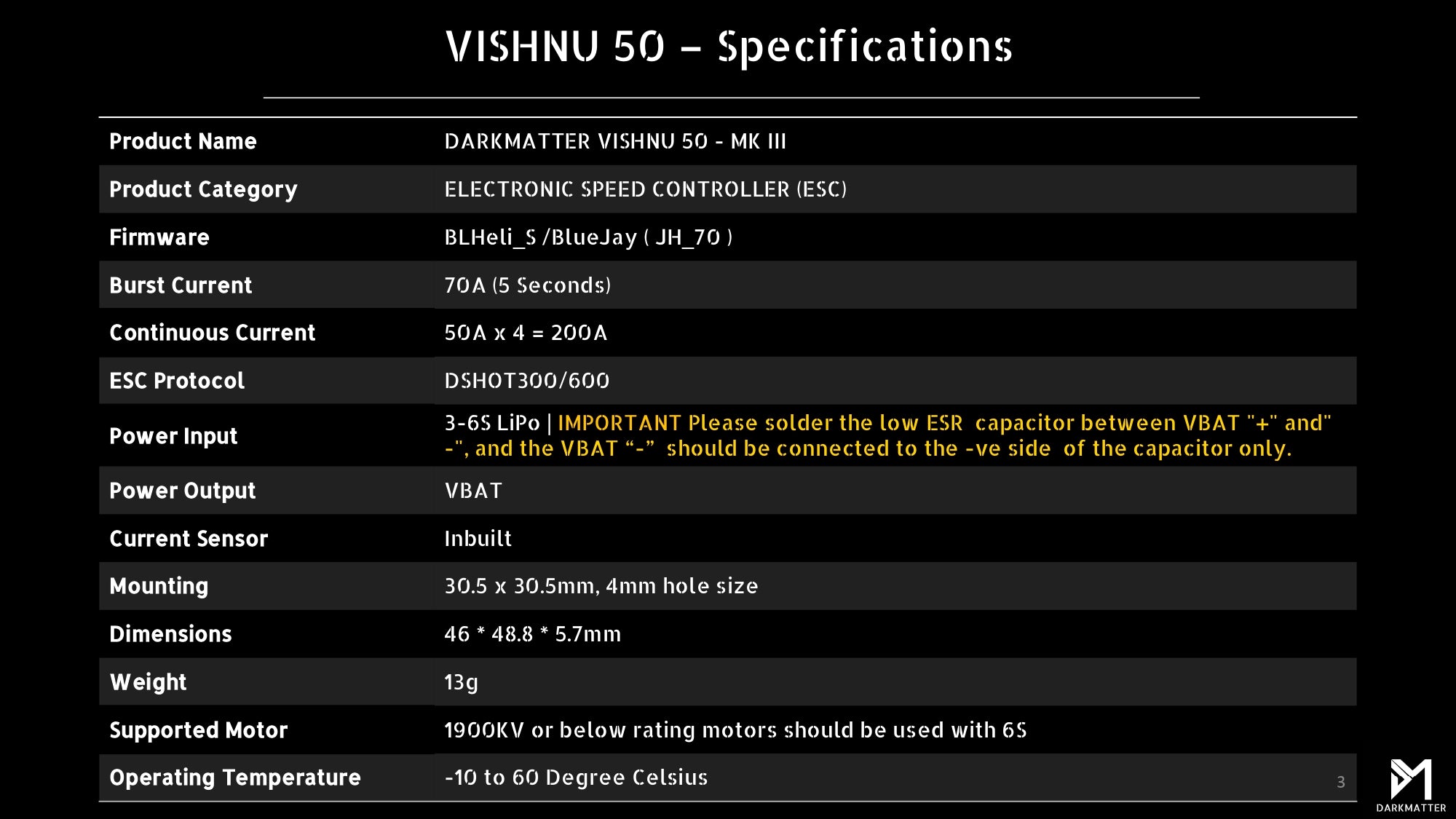 Introducing the DARKMATTER® VISHNU 50 ESC: Power Your Flight with Precision