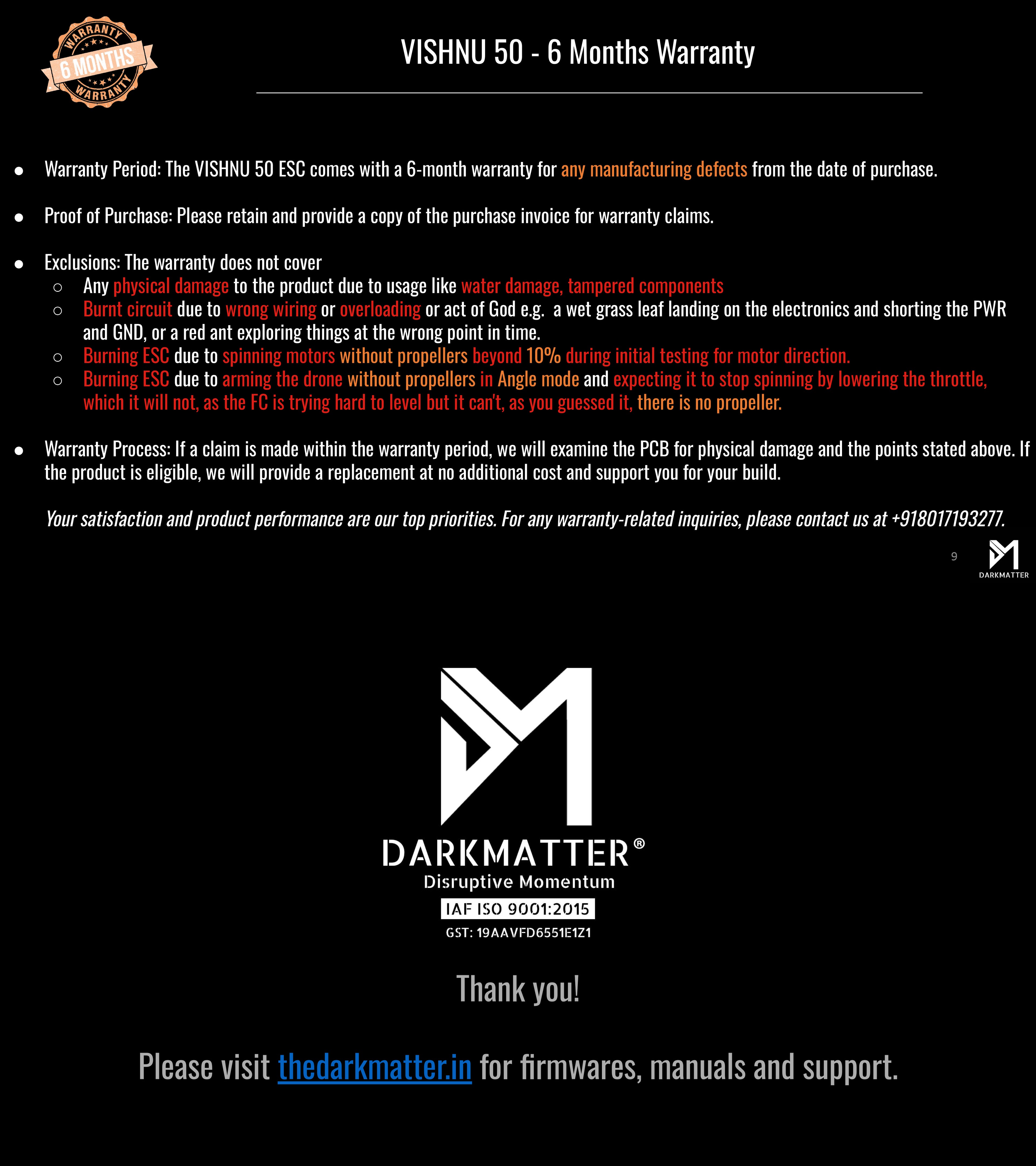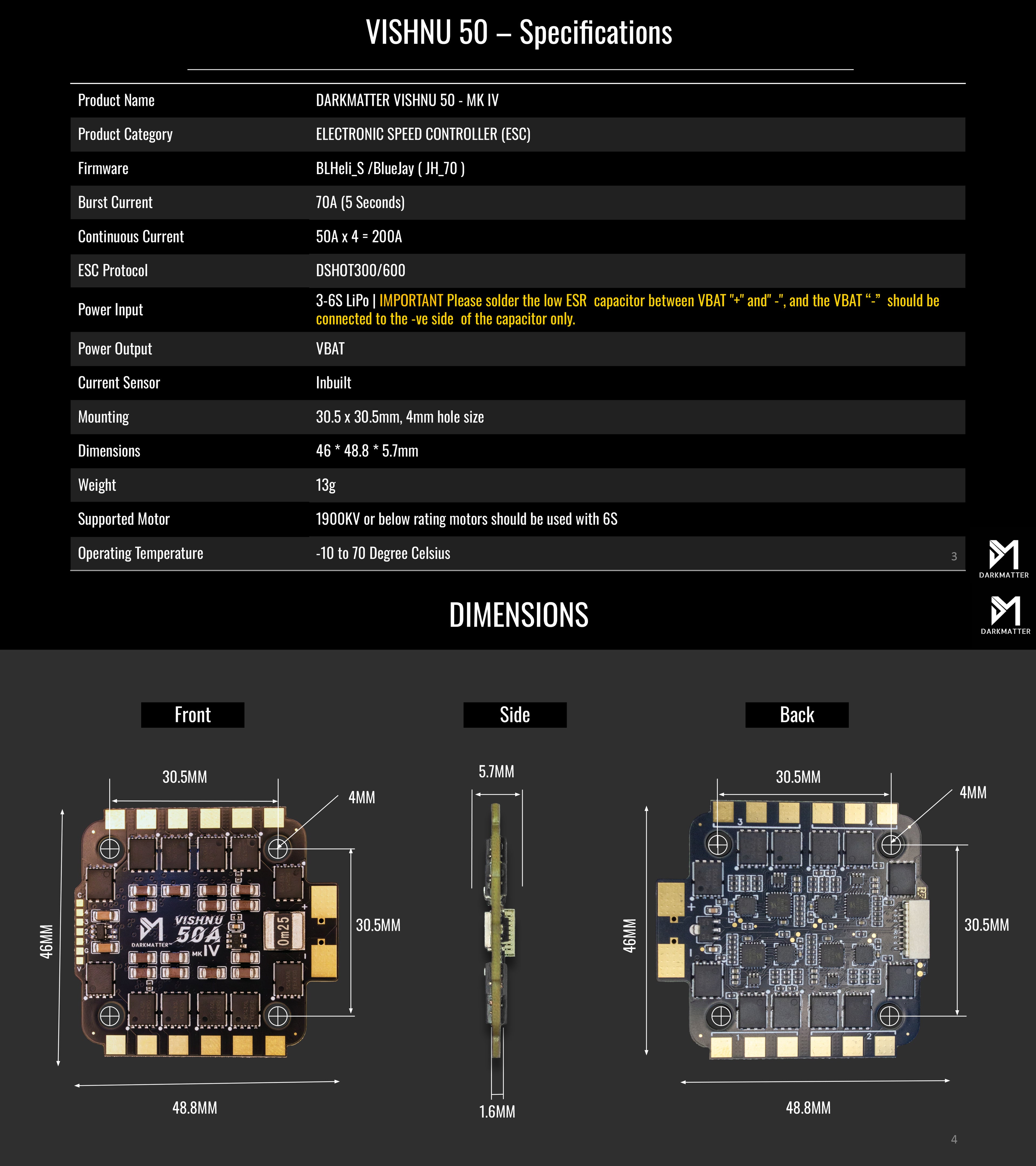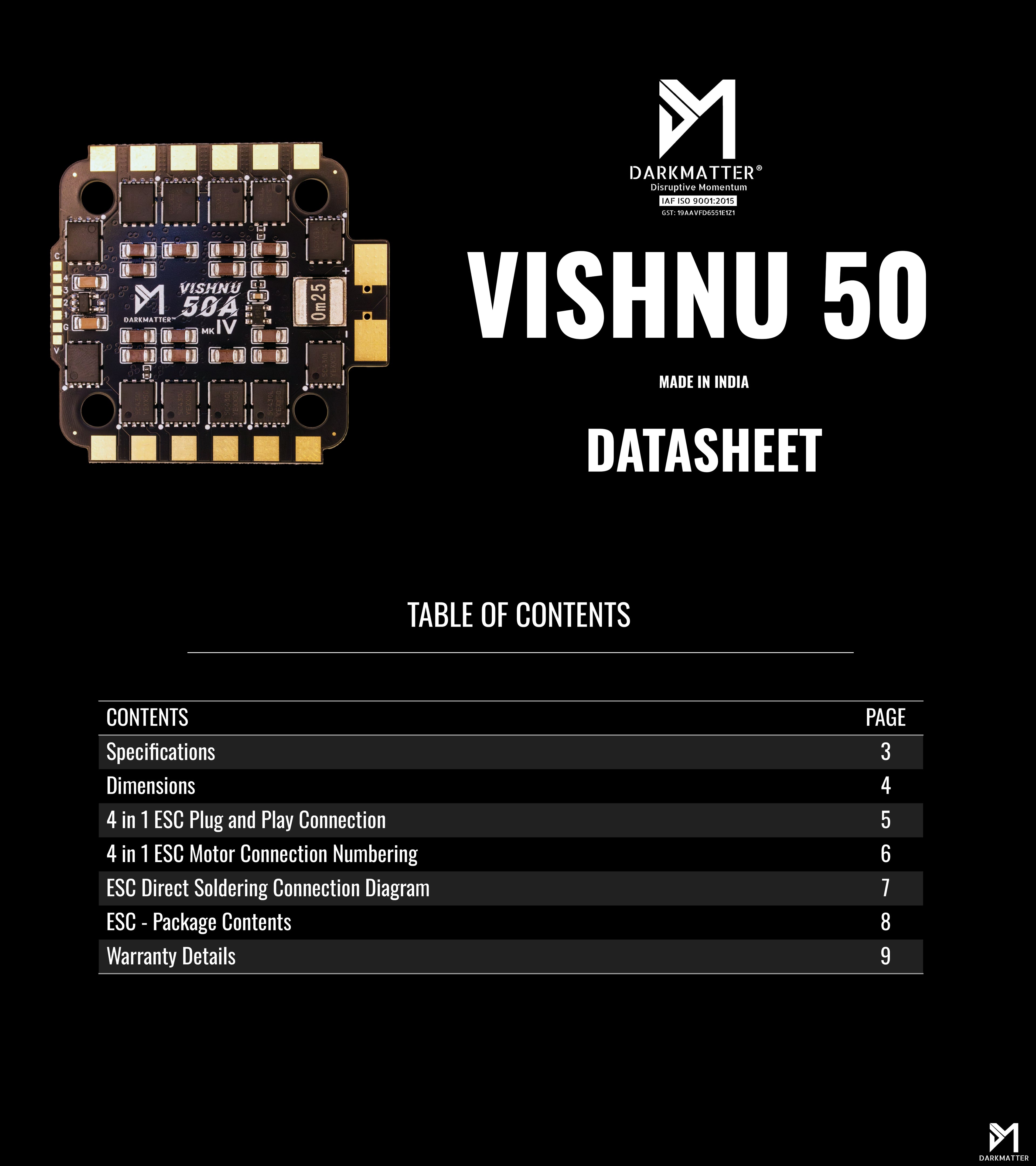 Whether you're building a race quad, freestyle machine, or a cinematic platform, the VISHNU 50 ESC provides a powerful and dependable foundation for high-performance flying.